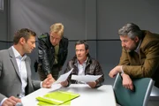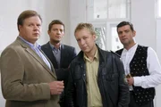 Die letzte SitzungHartl (Michael A. Grimm, l.), Hansen (Igor Jeftic, 2.v.l.) und Polizist Mohr (Max Müller, 2.v.r.) untersuchen den Mord an einem Psychotherapeuten. Times Square-Wirt Jo (Christian K. Schaeffer, r.) weiß mal wieder mehr über den Fall, als den Ermittlern lieb ist.Bild: © ORF2