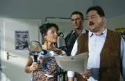 Stockl ermittelt31. "Würden die Herren Rosenheim-Cops mal eine Lupe zur Hand nehmen, wäre der Fall längst aufgeklärt" - meint Sekretärin Stockl (Marisa Burger). (v.li.n.re. Marisa Burger, Markus Böker, Joseph Hannesschläger). © RECHTEHINWEIS: -Bild: © Erika Hauri