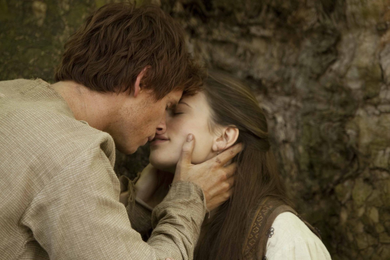 Als Jack (Eddie Redmayne, l.) im Überschwang der Gefühle wagt, Aliena (Hayley Atwell, r.) zu küssen, dreht die junge Frau total durch. Da erhält er das Angebot, am Kathedralenbau weiter mithelfen zu dürfen, wenn er in den Orden eintritt und allem Weltlichen entsagt ...Bild: © ProSieben Media AG © Tandem Productions GmbH / Pillars Productions (Ontario) Inc. / Pillars Productions (Muse) Inc. All rights reserved.
