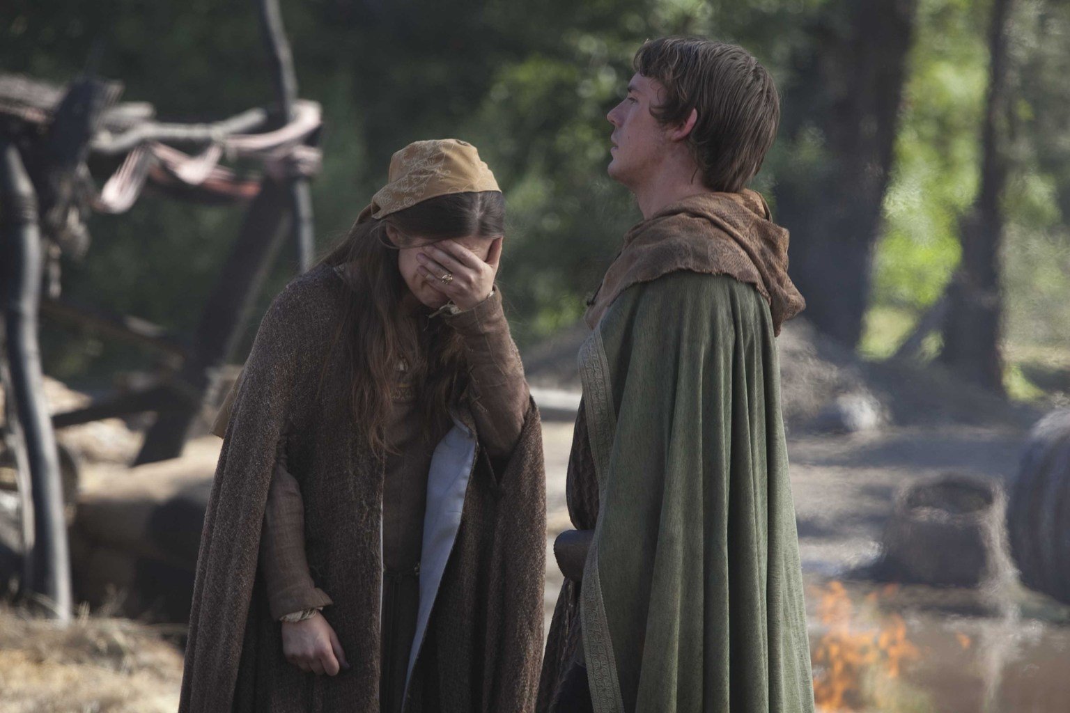 Als Aliena (Hayley Atwell, l.) erkennt, dass mit dem heimtückischen Brand auch die Zukunft ihres Bruders Richard (Sam Claflin, r.) gefährdet ist, lässt sie sich auf einen folgenschweren Deal ein ?Bild: © ProSieben Media AG © Tandem Productions GmbH / Pillars Productions (Ontario) Inc. / Pillars Productions (Muse) Inc. All rights reserved.