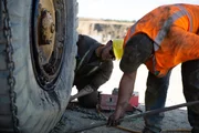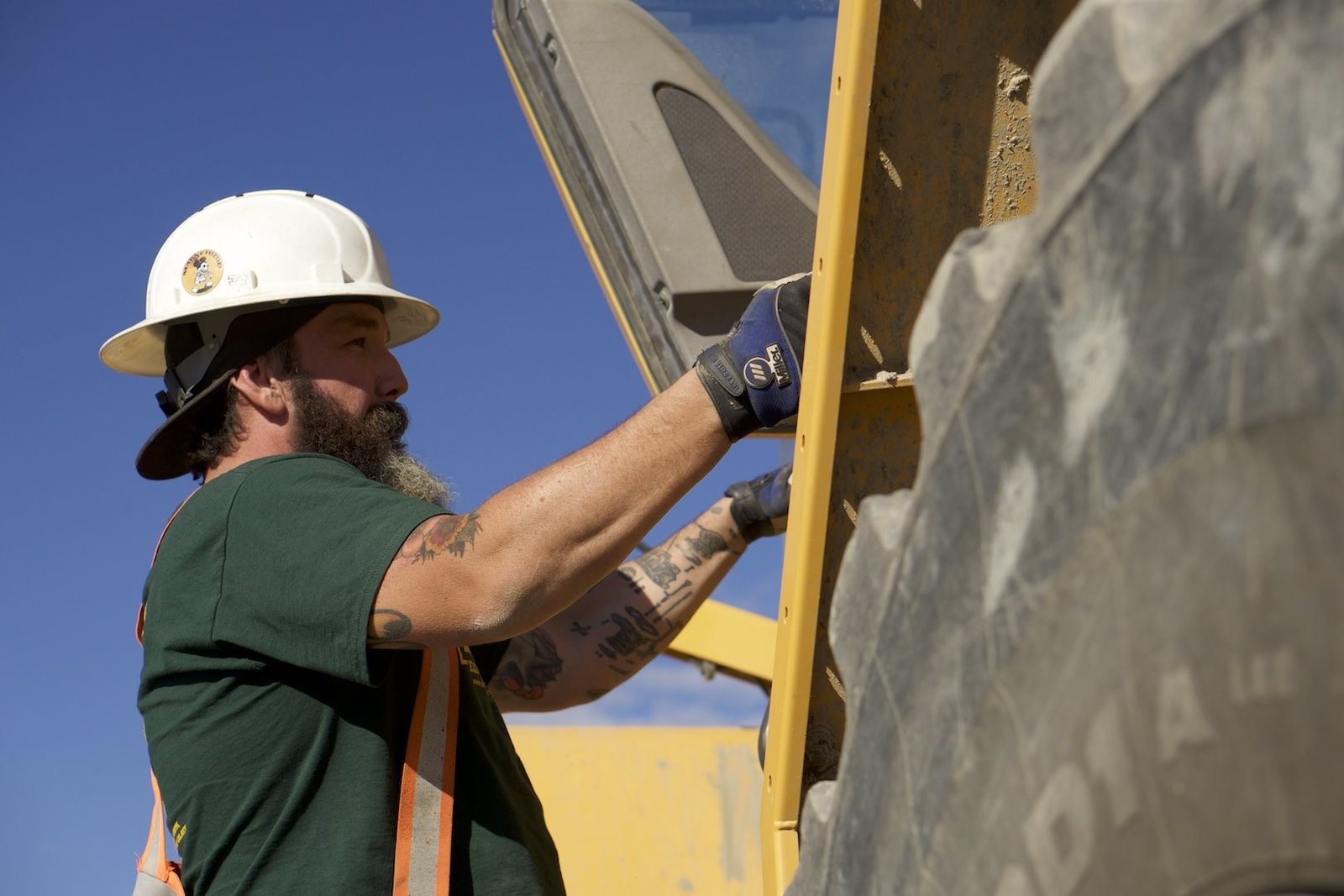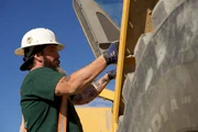 Auf der KippeRyan Hofer getting into a rock truck.Bild: © Discovery Communications