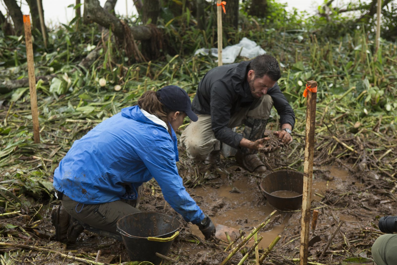 Aufbruch ins UngewisseMehgan Heaney-Grier and Brett Tutor dig for Guarani artifacts.Bild: © Discovery Channel
