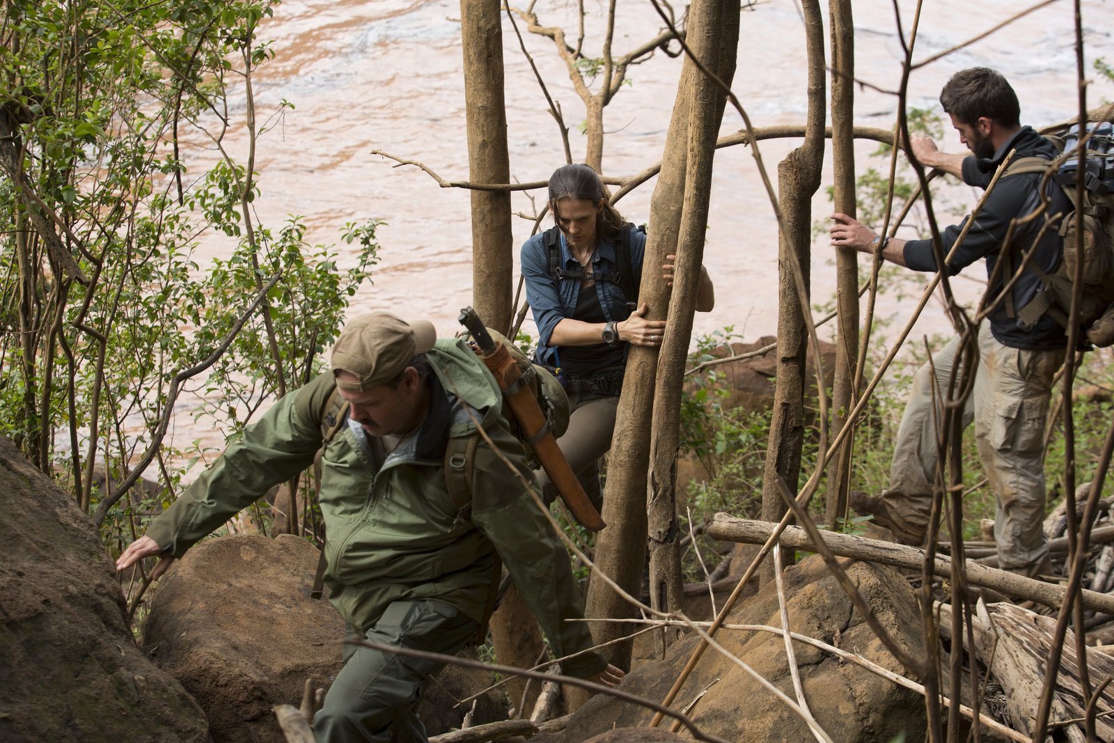 Das Geheimnis des WassersCork Graham, Mehgan Heaney-Grier, and Brett Tutor hike along a trail by the river.Bild: © Discovery Channel