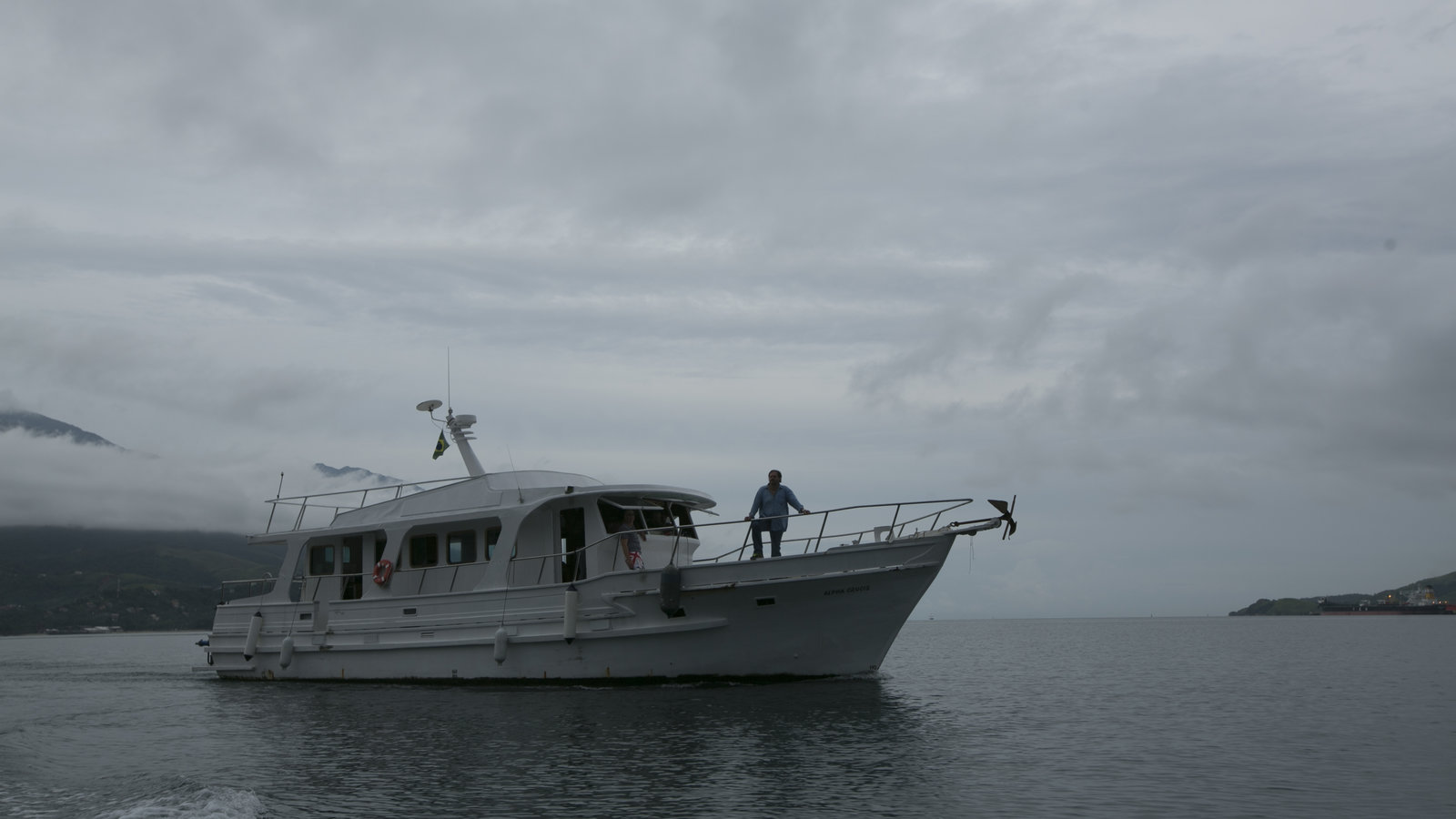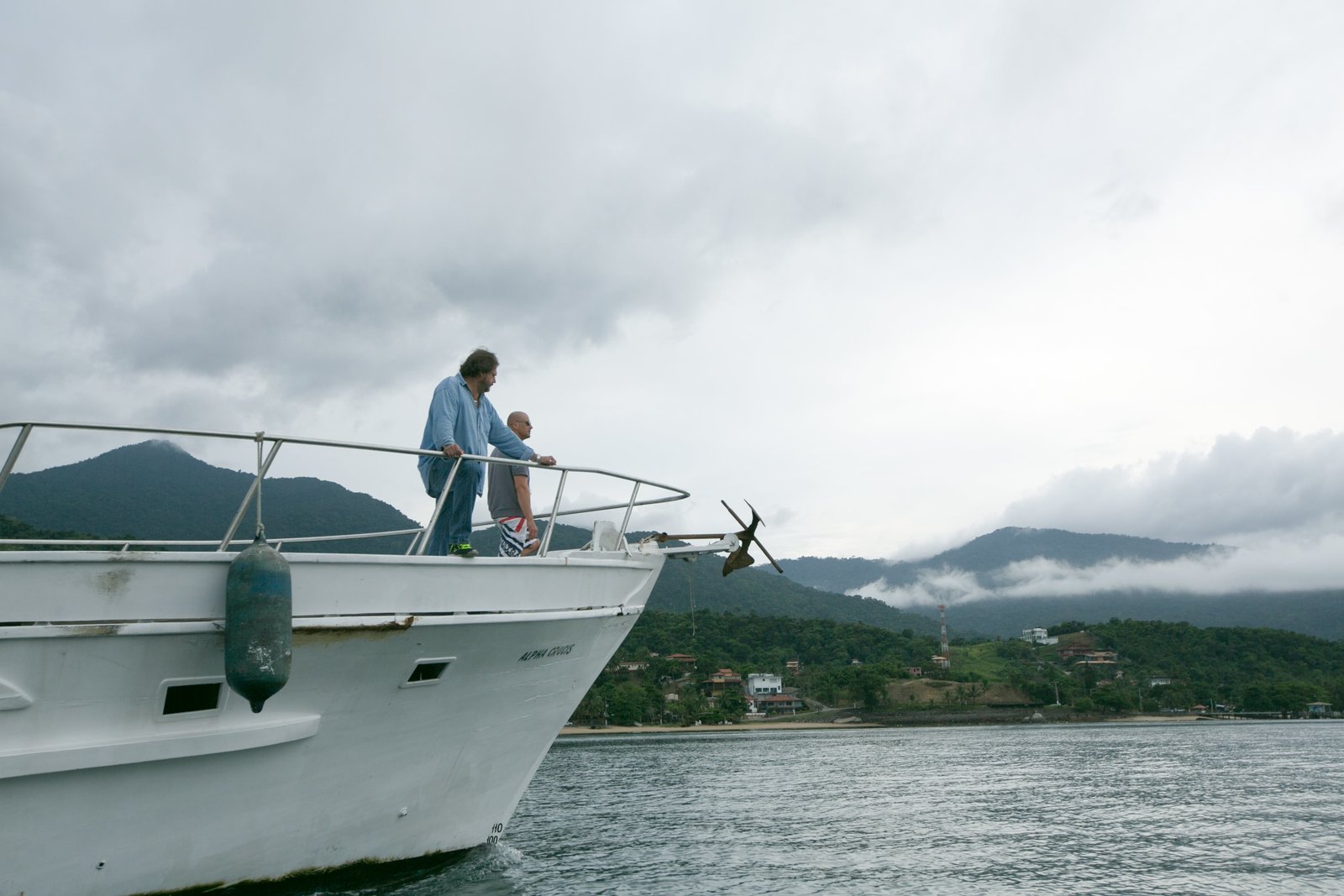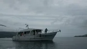 Der SturmCork Graham and Bryan Fry on the bow of the Alpha Crucis.Bild: © Discovery Channel / Discovery Communications