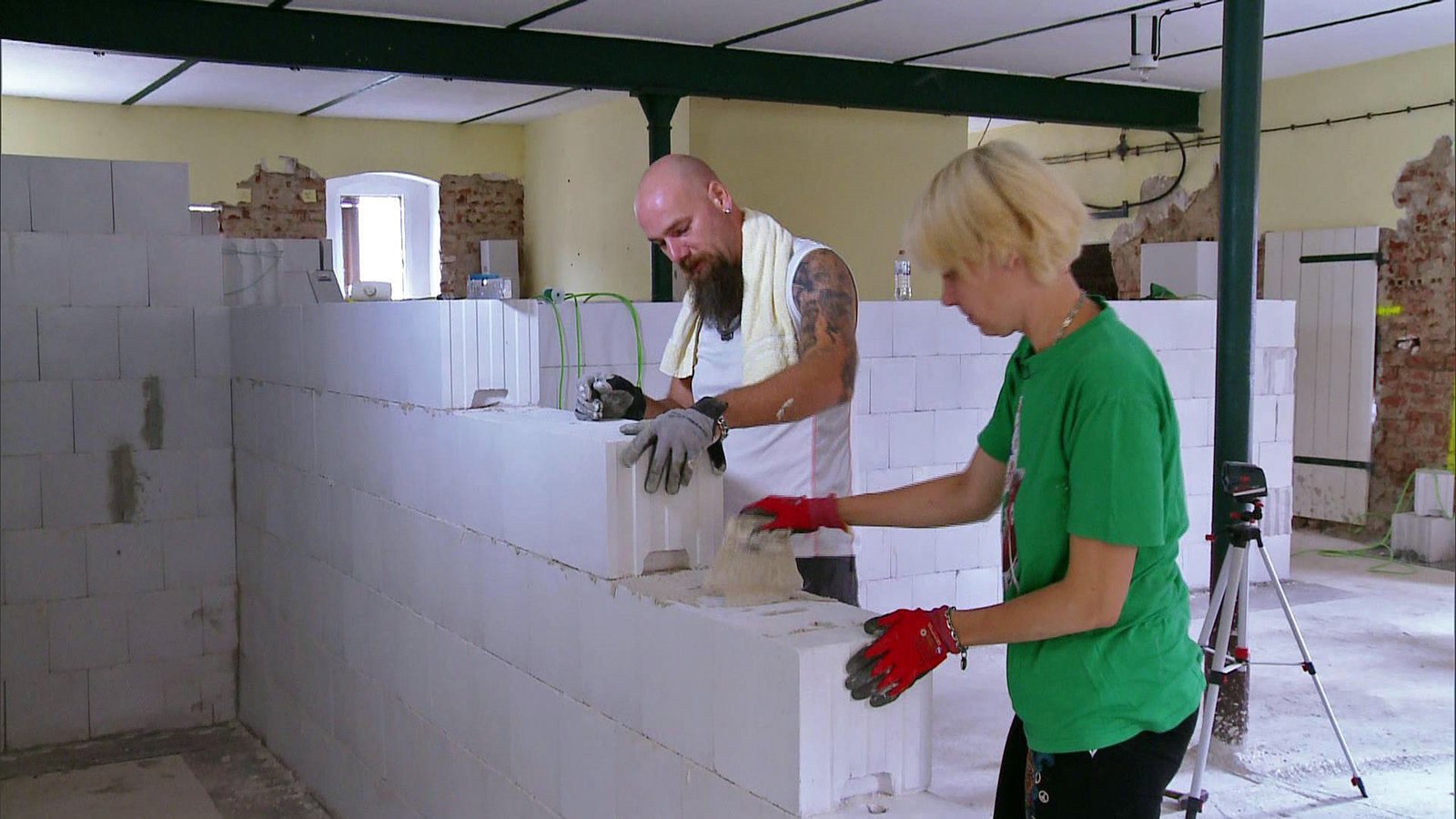 Wohnen in der alten SchuleAnnika und Andreas bei MaurerarbeitenBild: © RTL II