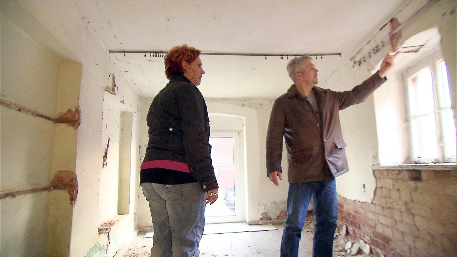 Folge 313Matthias und Heike haben sich ein Mehrfamilienhaus mit sechs Wohnungen für 50.000 Euro gekauft. Zwei der Wohnungen will das Paar für sich ausbauen. Doch bis es soweit ist, muss das Haus erst einmal komplett saniert werden.Bild: © RTL Zwei
