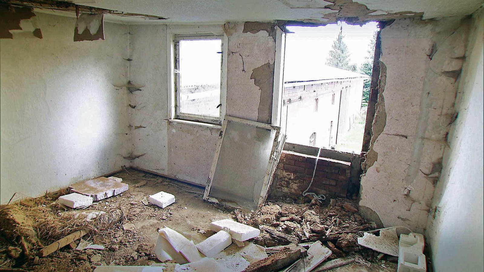 Ein Traumhaus für 500 Euro!Das Haus ist eine echte Bauruine: Böden und Deckenbalken sind morsch, die Fenster kaputt und elektrische Leitungen nicht vorhanden. Insgesamt gibt es 400 Quadratmeter Wohnfläche zu sanieren.Bild: © RTL II
