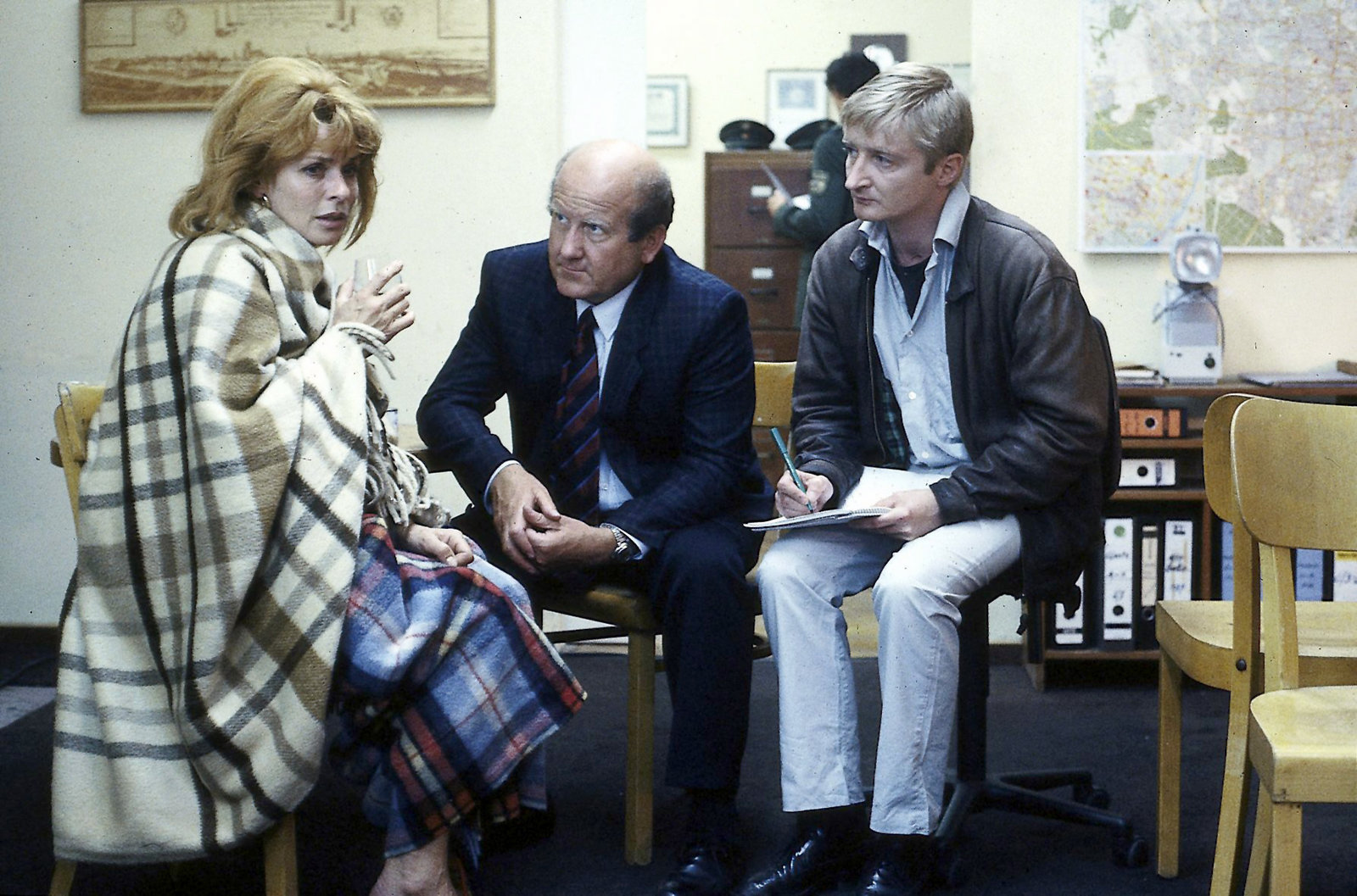 Muttertag9. Gegenüberstellung bei der Kriminalpolizei. Wird Gerdi ihre Hemmungen überwinden und den Fahrgast identifizieren, der sie brutal überfallen hat? (V.li.: H.D. Trayer, Senta Berger, Michael Schreiner, Udo Thomer).Bild: © ORF/ZDF/Steve Power