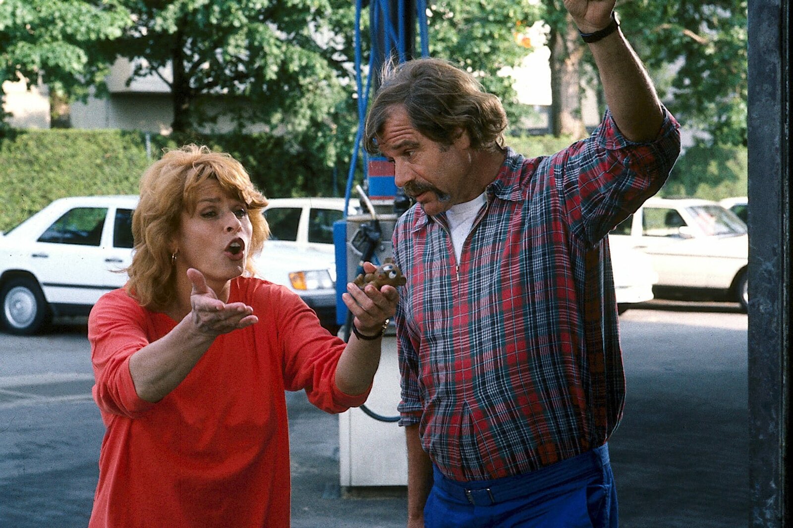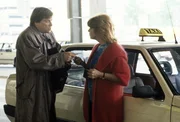 Miss MiramareIn der Waschanlage ist die Funkantenne ihres Taxis abgebrochen. Selbstverständlich macht Gerdi den Tankwart verantwortlich. (Senta Berger, Karl Scheydt).Bild: © ZDF und Steve Power