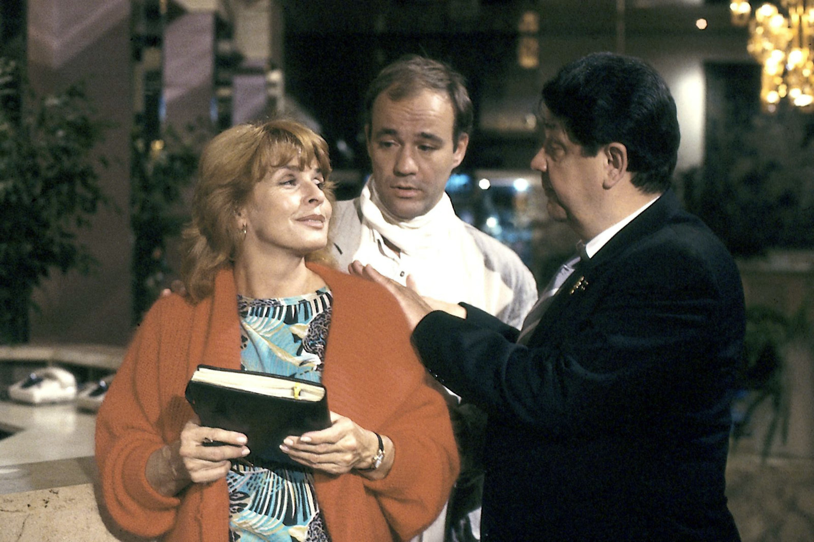 OktoberfestIn einem Fernsehfilm soll Gerdi (Senta Berger, 2.v.r.) eine kleine Rolle als Taxifahrerin spielen. Hauptdarsteller Sorbas (Heiner Lauterbach, l.), den sie als Fahrgast zufällig kennenglernt hat, hat das arrangiert. (als TV-Regisseur: Bernd Fischerauer, 2.v.l.; als Regieassistentin: Eva Astor, r.).Bild: © ORF III