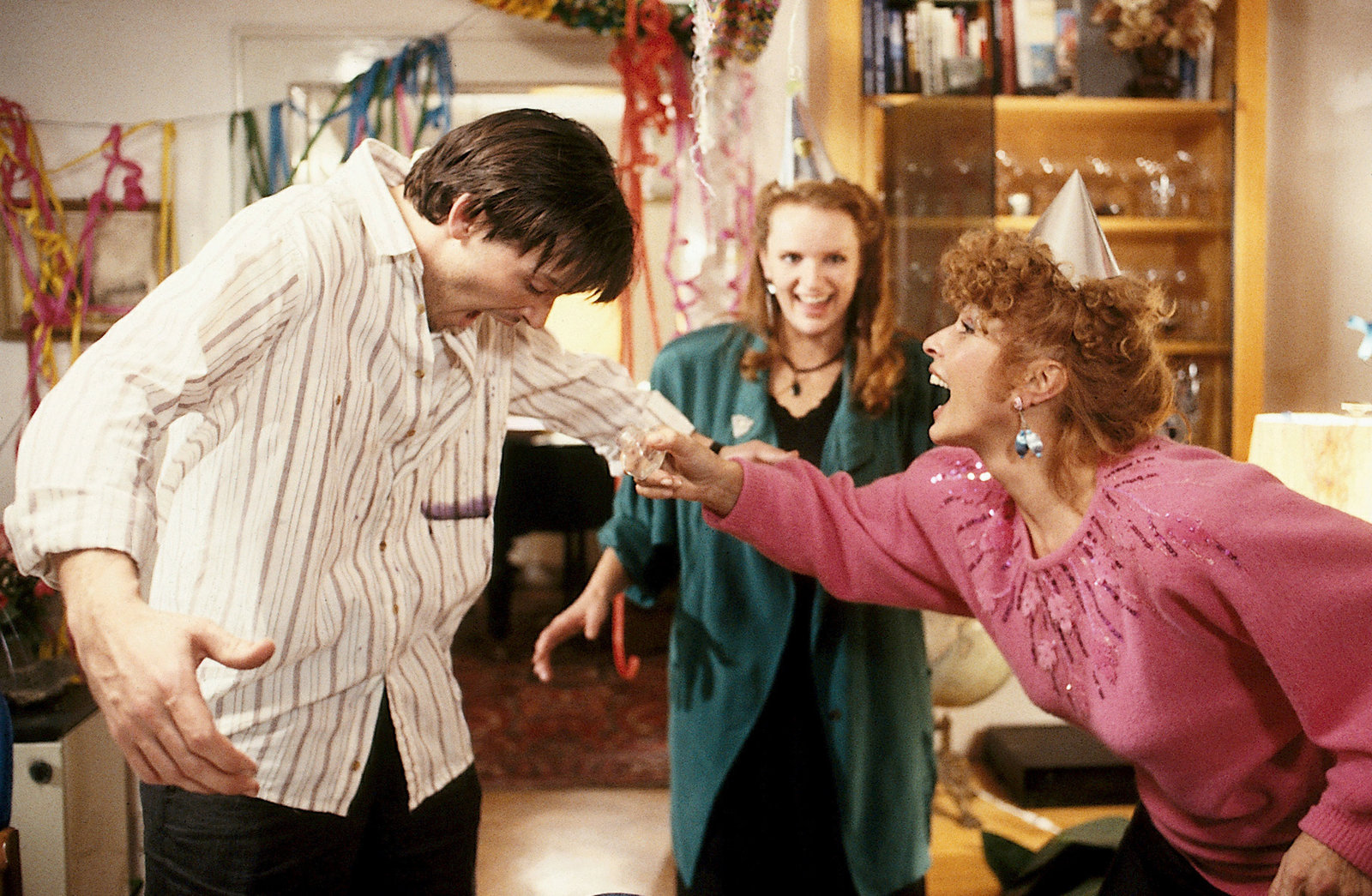 Gutes neues JahrAuch auf Kosten von Herbert (Michael Roll) sorgt Gerdi (Senta Berger) für Silvesterstimmung. Amüsierte Zuschauerin ist Gerdis Tochter Jennifer (Elena Rublack, Mi.).Bild: © ORF/ZDF/Steve Power