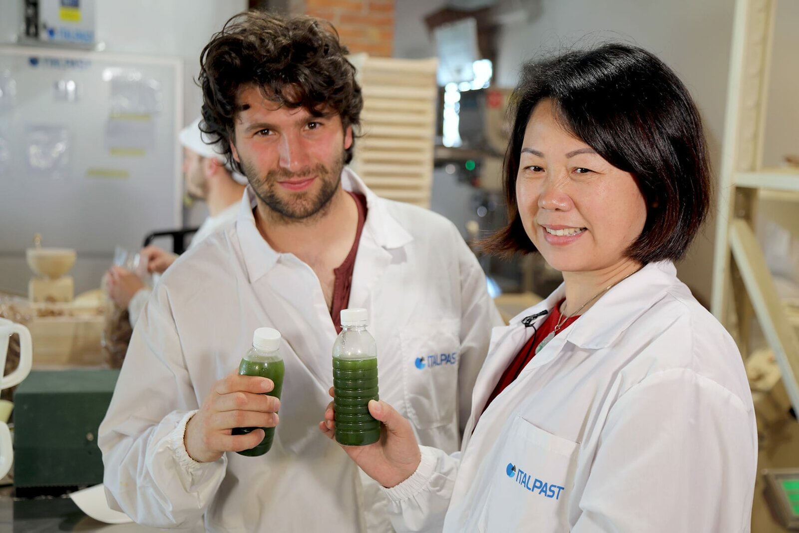 Pasta mal ganz andersYao hat Amadeo den speziellen grünen Orchideensaft mitgebracht, mit dem sie zu Hause in China ihre Pasta färbt.Bild: © MDR / © Marco Colonna