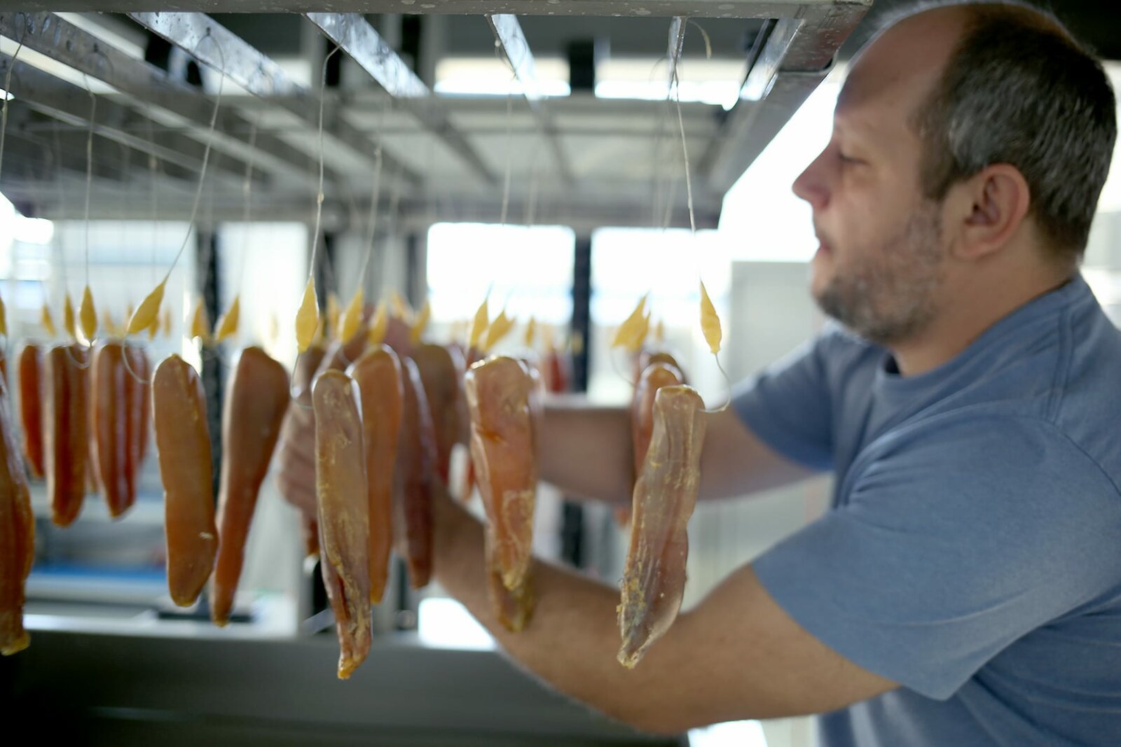 Rogen und KarasumiBild: © Dafni Kalafati / Petros überzieht die Avgotaraho mit einer dünnen Schicht aus Bienenwachs.