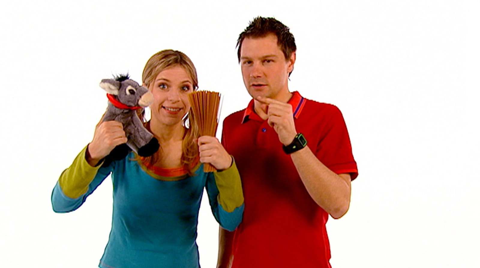 Folge 58Tanja und André verhaspeln sich bei einem Zungenbrecher, in dem Esel gerne Nudeln essen.Bild: © WDR