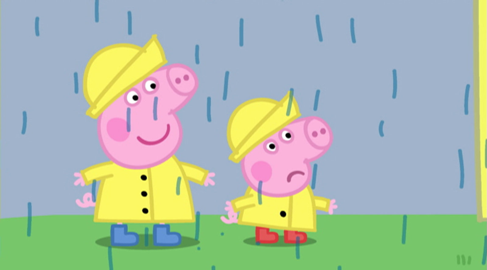 Folge 110Peppa Wutz und ihr kleiner Bruder spielen im Regen.Bild: © WDR/Astley Baker Davies Ltd./Contender Group Ltd.