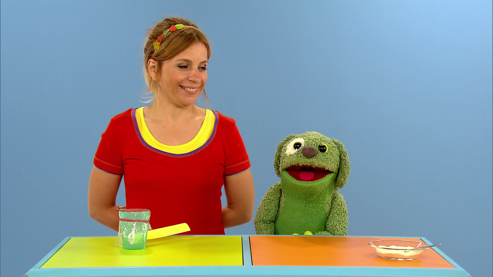 Folge 394In den Lach- und Sachgeschichten wird heute gezeigt, wie die Streifen in die Zahnpasta kommen.Bild: © WDR