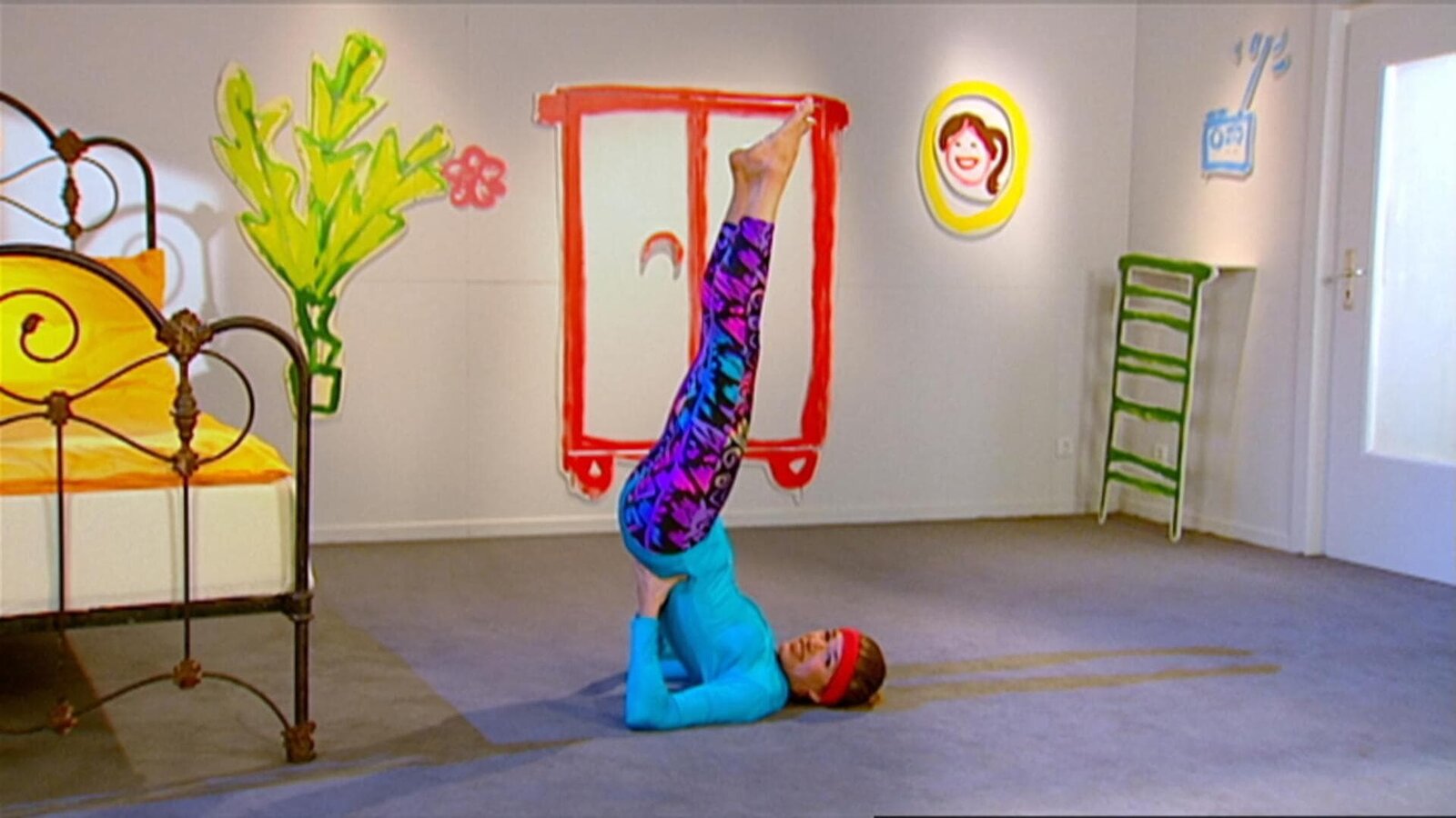 Folge 99Anke Engelke macht auf ihre ganz eigene Weise Turnübungen, um fit zu bleiben.Bild: © WDR