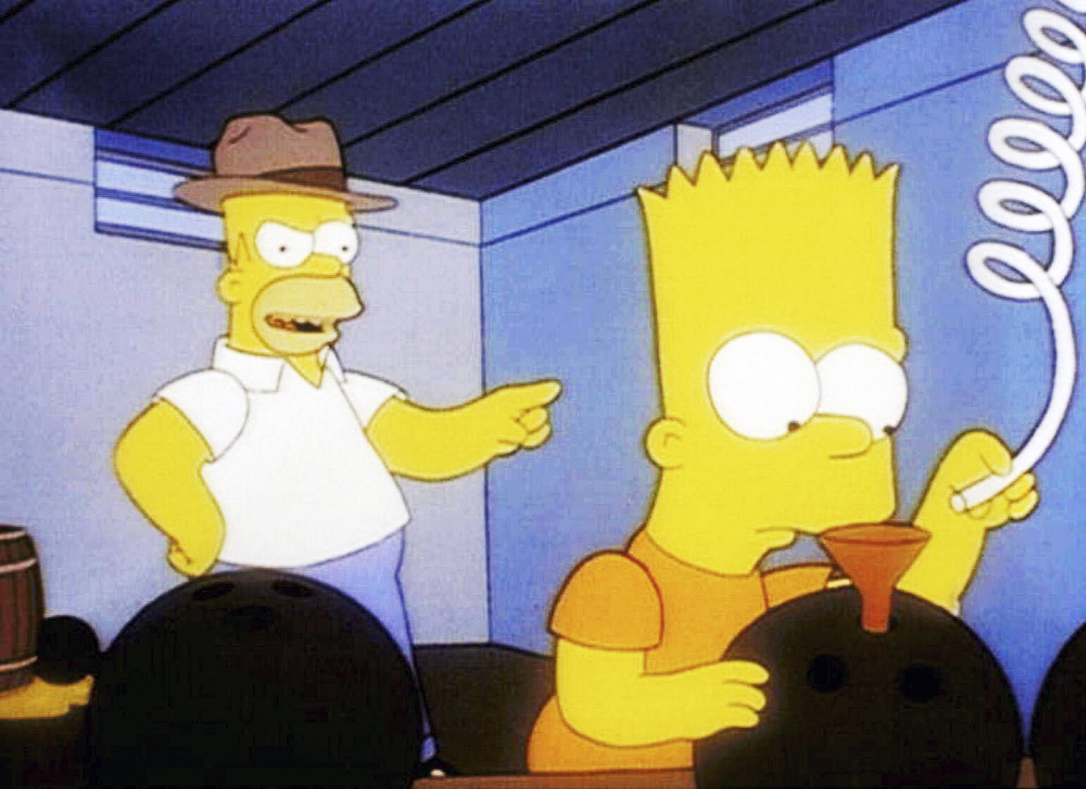 Der mysteriöse Bier-BaronUnter der Anleitung seines Vaters Homer füllt Bart die Bowlingkugeln mit Bier.Bild: © PR7; ProSieben Media AG