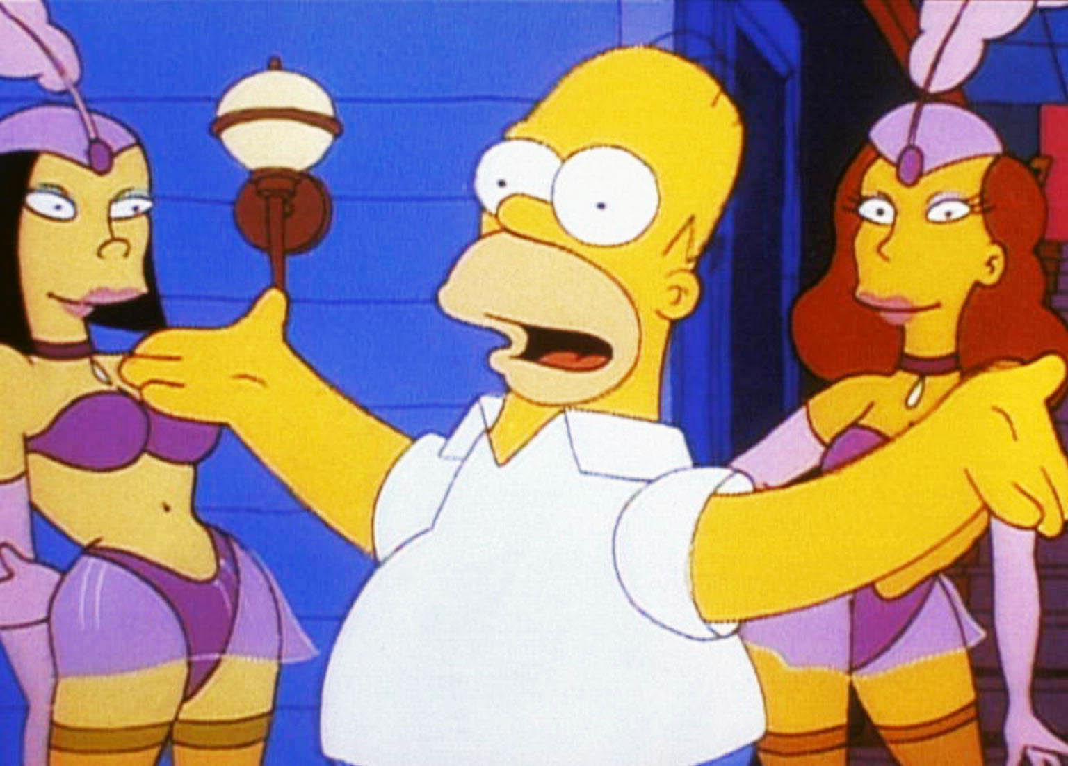 Homer (Mi.) ist begeistert von den hübschen Tänzerinnen in Belles Amüsierbetrieb.Bild: © PR7; ProSieben Media AG