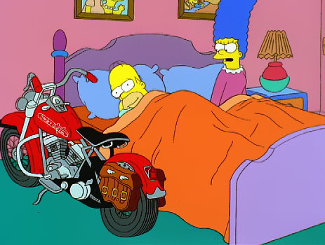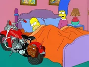 Der Kampf um MargeHomer und Marge gewinnen bei einem Tanzwettbewerb eine Harley Davidson. Grund genug für Homer, eine Motorradgang zu gründen, der er ausgerechnet den Namen einer bereits bestehenden, berüchtigten Gang gibt. Deren Anführer entführt kurzerhand Marge, um sich an Homer zu rächen. Während sich dieser auf die Suche nach Marge begibt, krempelt sie die Bösewichte um und macht sie zu ehrbaren Mitbürgern. Im Bild: Marge ist empört, weil Homer seine Harley mit ins Schlafzimmer gebracht hat.Bild: © ORF/EM.TV