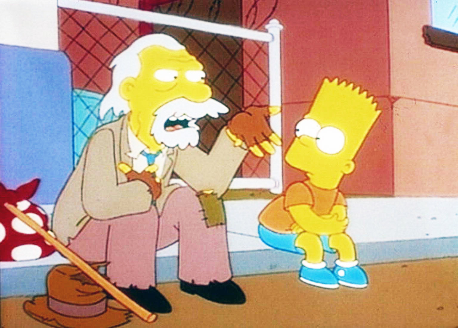 Wer erfand Itchy und Scratchy?Der Obdachlose Chester erklärt Bart, dass er die Figur des Itchy erfunden hat.Bild: © PR7; ProSieben Media AG