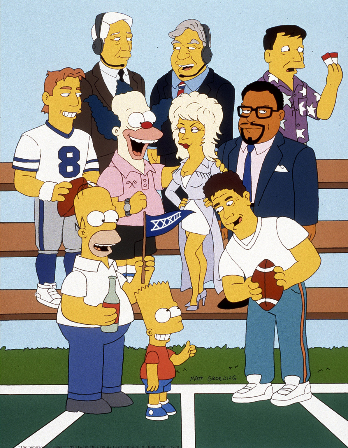 Nur für Spieler und ProminenteNach dem Superbowl kommt es zu einem Gruppenfoto mit Dolly Parton (M). Homer (unten l.) und Bart (unten M.) sind mit von der Partie ...Bild: © und TM Twenthieth Century Fox Film Corporation - Alle Rechte vorbehalten Lizenzbild frei