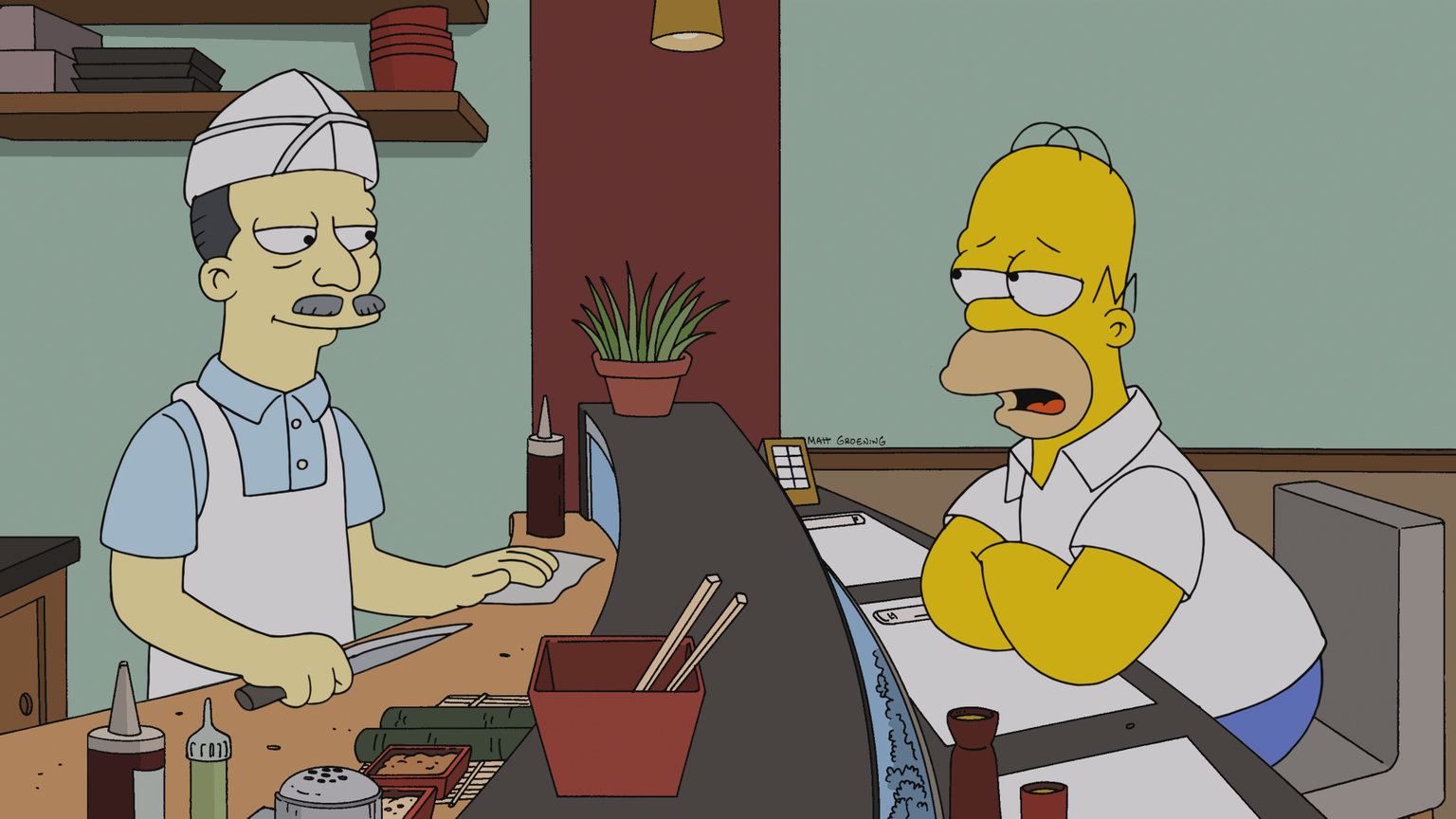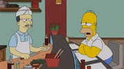 Was animierte Frauen wollenWährend Milhouse eine Taktik sucht, wie er Lisa rumkriegen kann, sucht Homer (r.) nach einem Fauxpas Rat beim Küchenchef (l.) ...Bild: © und TM Twentieth Century Fox Film Corporation - Alle Rechte vorbehalten Lizenzbild frei