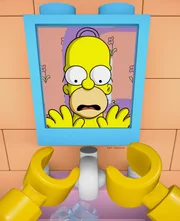 Auf dänische Steine können Sie bauenAls der Lego-Homer sein menschliches Spiegelbild sieht, dämmert ihm, dass die Legowelt nicht real ist und er irgendwie versuchen muss, in die Wirklichkeit und damit in seinen Körper aus Fleisch und Blut zurückzukehren ...Bild: © 2013 Twentieth Century Fox Film Corporation. All rights reserved. Lizenzbild frei