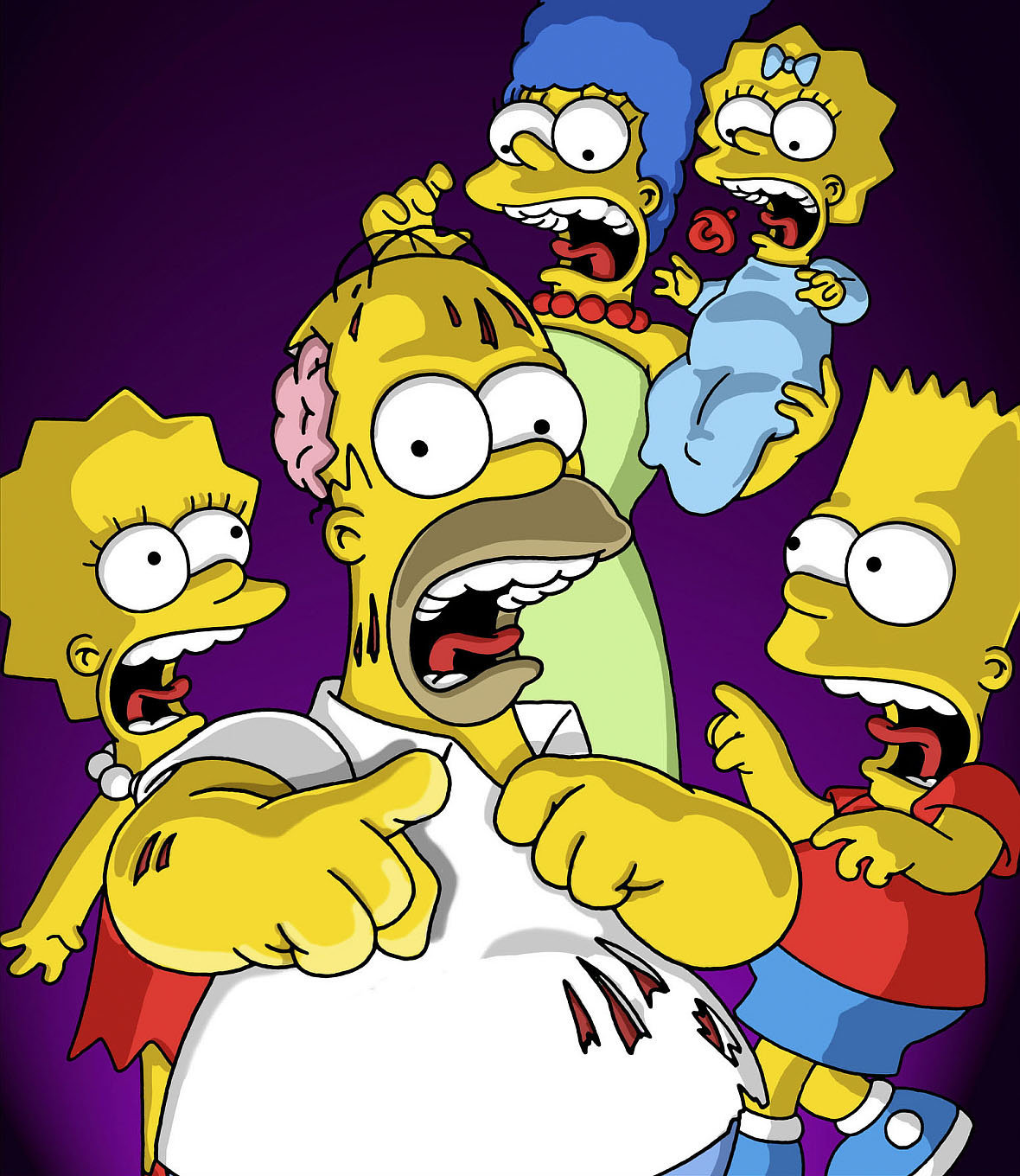 Die Gefahr, erwischt zu werdenEine fast ganz normale Familie: Lisa (l.), Marge (2.v.r.), Maggie (r.), Homer (2.v.l.) und Bart (oben) ...Bild: © und TM Twentieth Century Fox Film Corporation - Alle Rechte vorbehalten