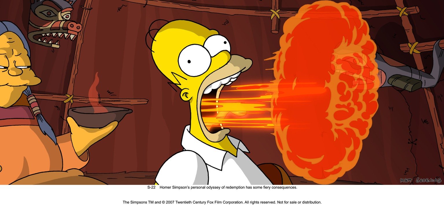 Die Simpsons - Der FilmEiner Inuit-Frau (l.) gelingt es, Homer Simpson (r.) zu retteen mit einem offensichtlich feurigen Heilmittel ...Bild: © ProSieben Media AG © 2007 Twentieth Century Fox Film Corporation