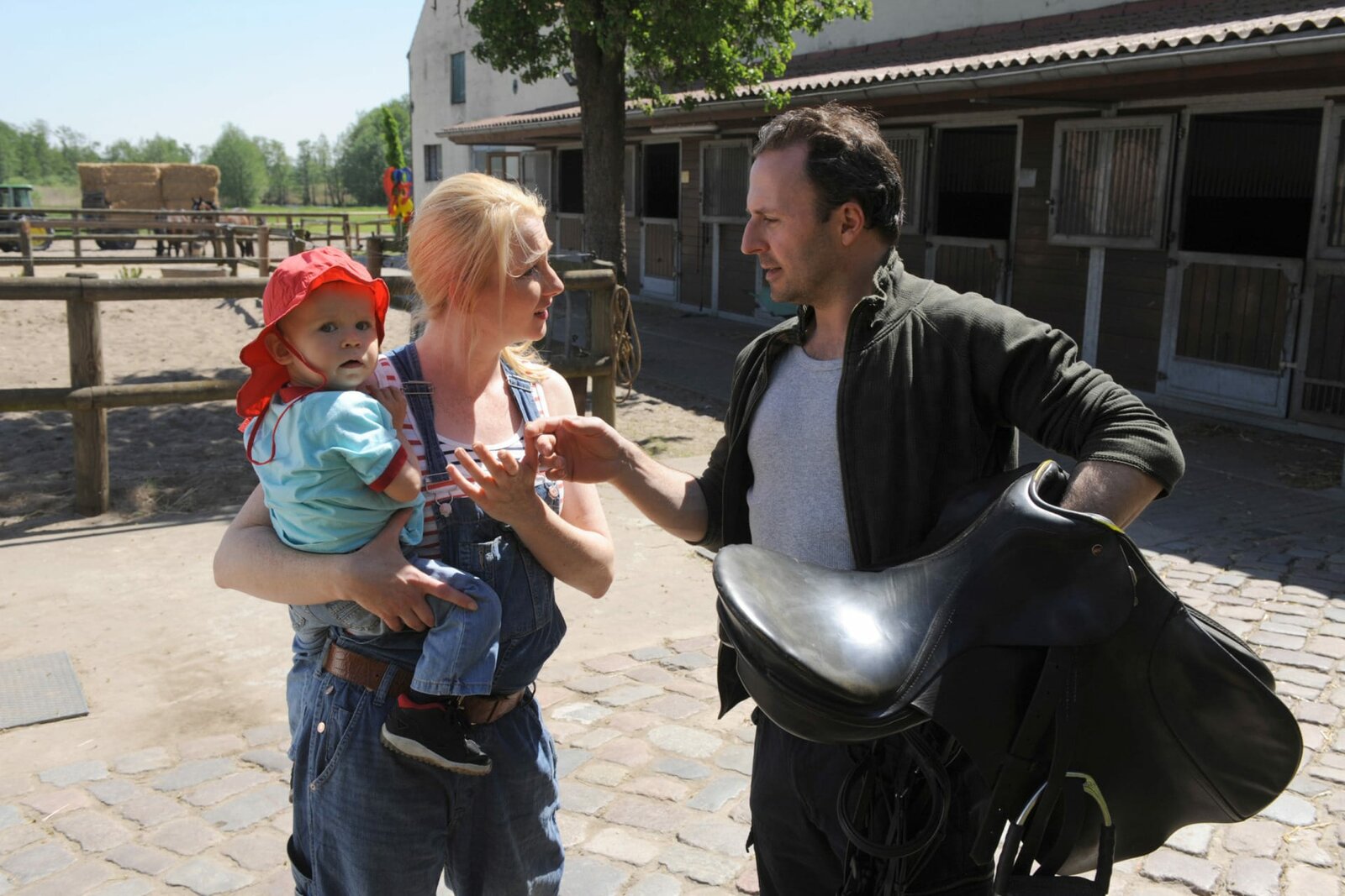 Drunter und drüberhr-fernsehen DIE STEIN (24), Drunter und drüber, 26-teilige Fernsehserie, Deutschland 2008 - 2011, Regie: Peter Altmann, am Montag (17.11.14) um 20:15 Uhr. Karola Koenig (Katja Studt, M.) kommt mit ihrem Sohn Clemens (John Chris Repp, l.) auf den Reiterhof. Bahnt sich da etwas an zwischen ihr und Micha (Robert Schupp, r.)?Bild: © HR/ARD/Claudius Pflug