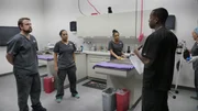 ... und Action!The doctors standing and eating in the kitchen at the crawfish boil dinner.Bild: © Discovery Communications
