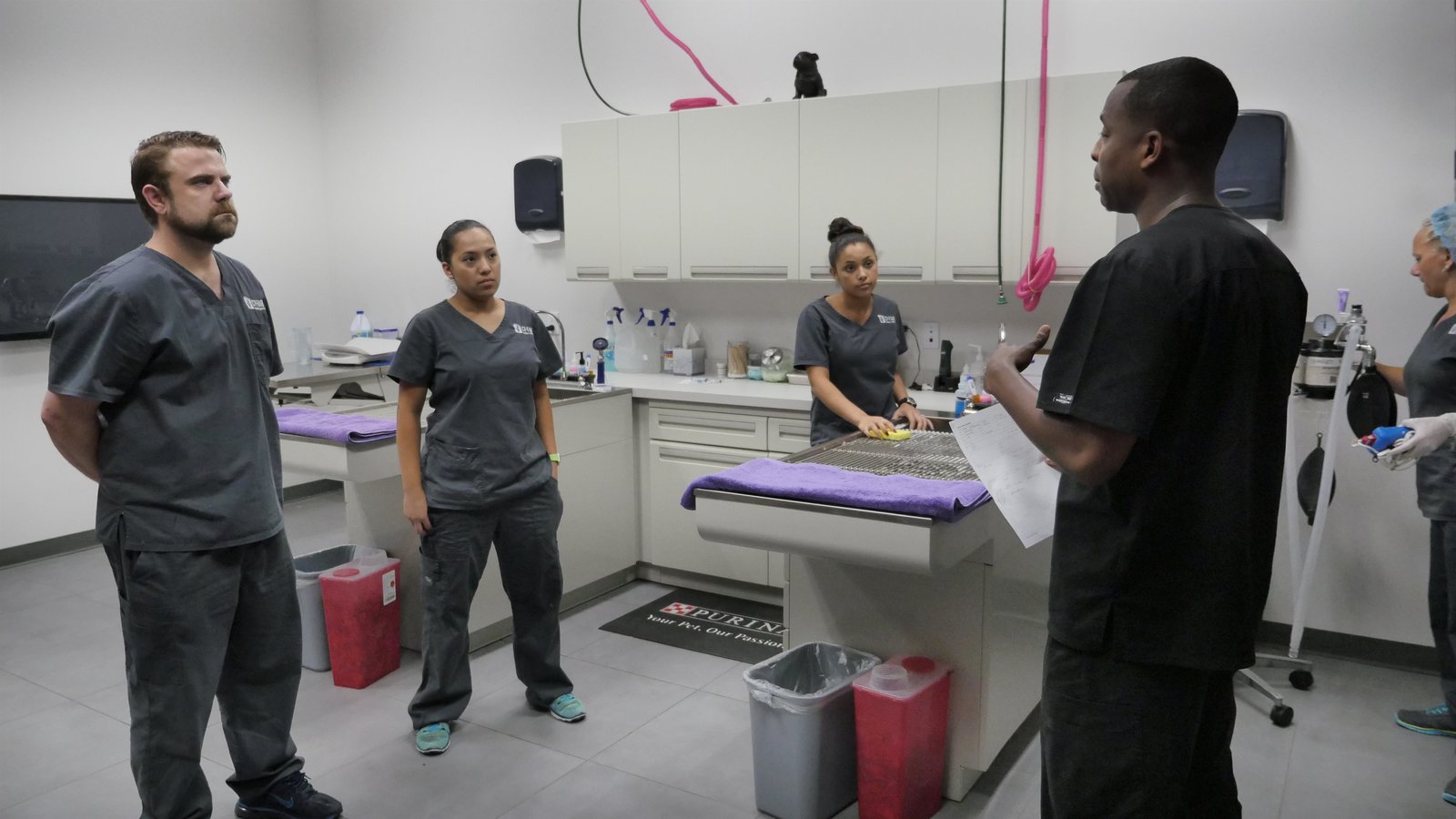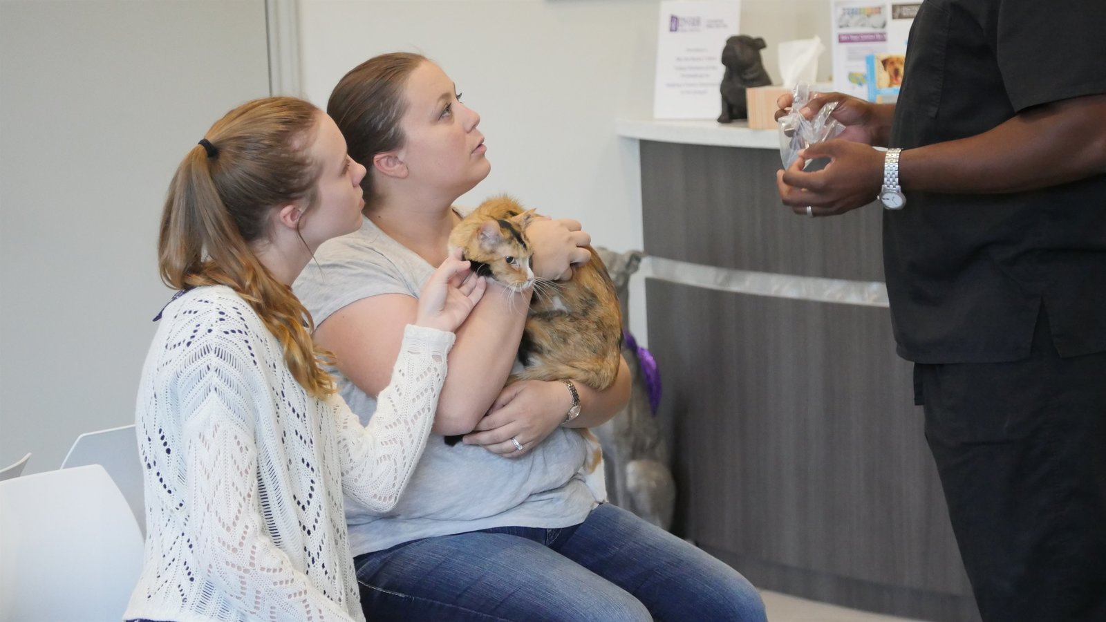 Drei echte TexanerCrystal and Lauren listening to Dr. Ross feedback on surgery of Amber the cat.Bild: © Animal Planet