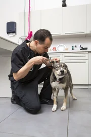 Das EhegelübdeDr. L and the owner look at JB's neck.Bild: © Animal Planet / Discovery Communications