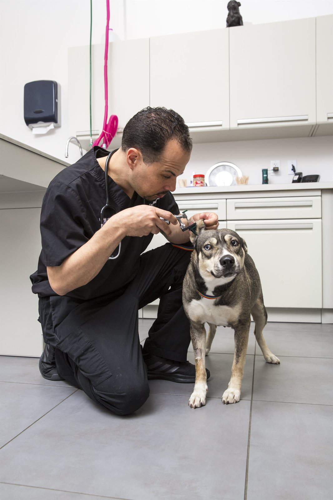 Ziegen-YogaDrs Blue, Lavigne, and Ross with dog in exam roomBild: © DSPL