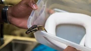 Petri Heil, Dr. BlueA snake is in a small container.Bild: © Animal Planet / Discovery Communications