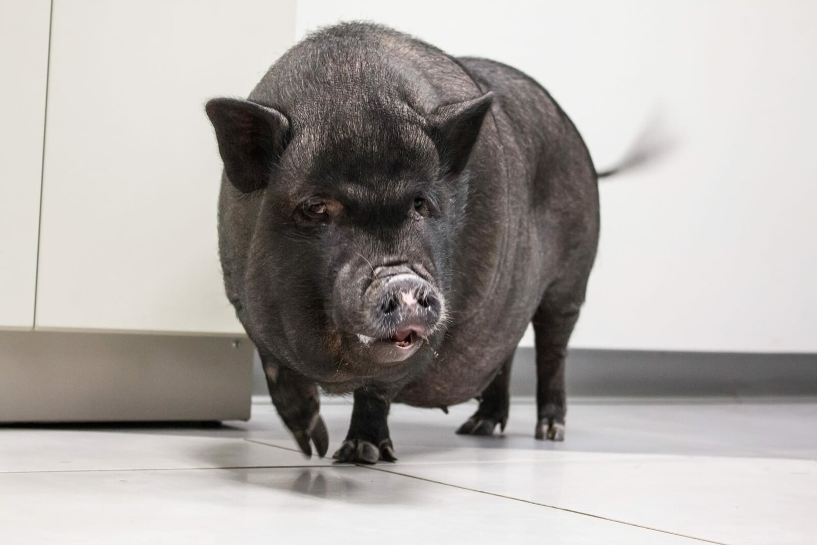 In QuarantäneClose up of Maltida the pig waiting to be seen by Dr. Ross.Bild: © PLURIMEDIA (Discovery Communications)