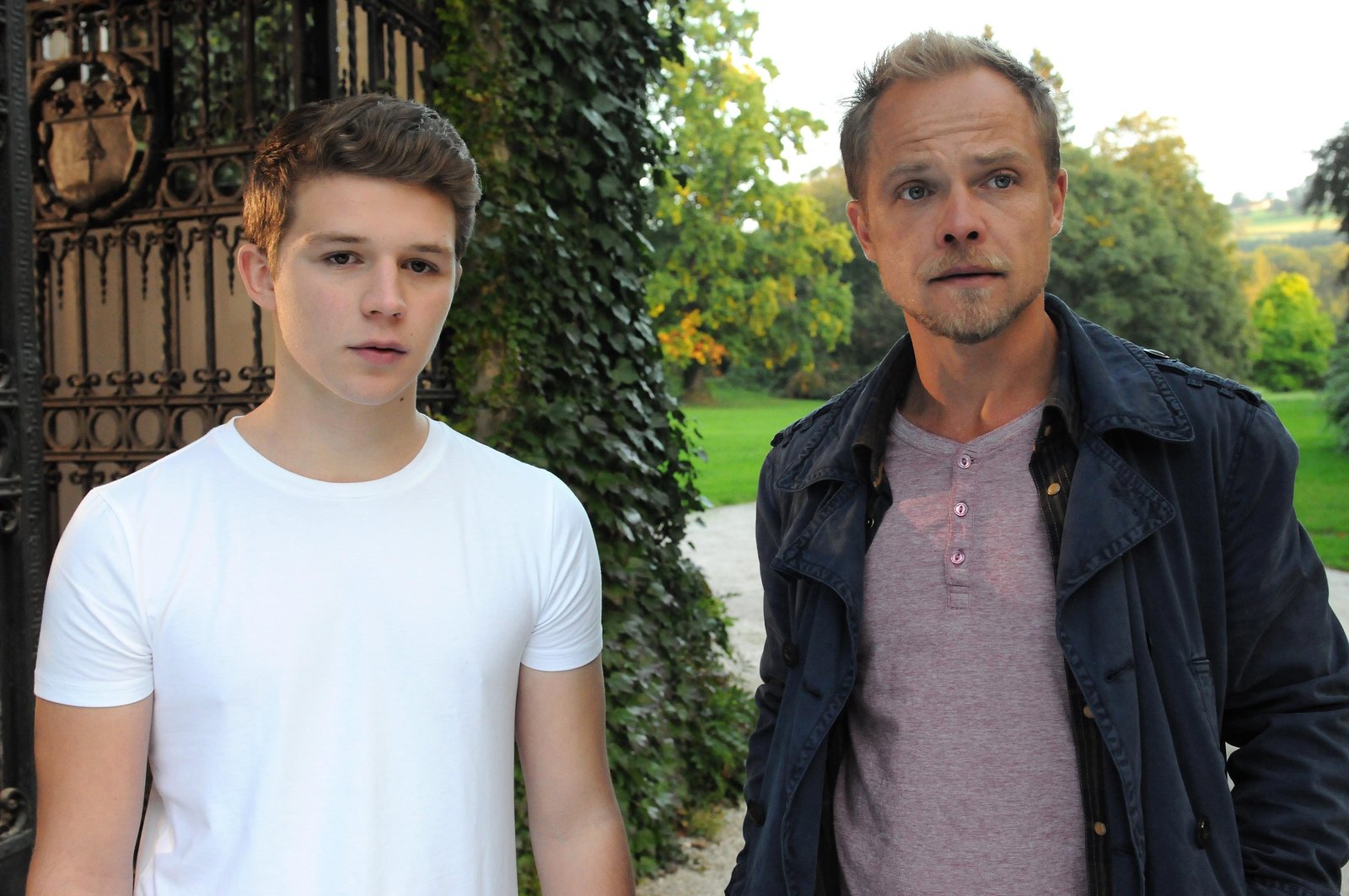Die Toten vom BodenseeDavid Pfeilschrifter (Simon Morzé, l.) erzählt dem Kommissar Micha Oberländer (Matthias Koeberlin, r.), dass er nichts von den Vorhaben seiner Eltern hält.Bild: © ZDF und Hubert Mican