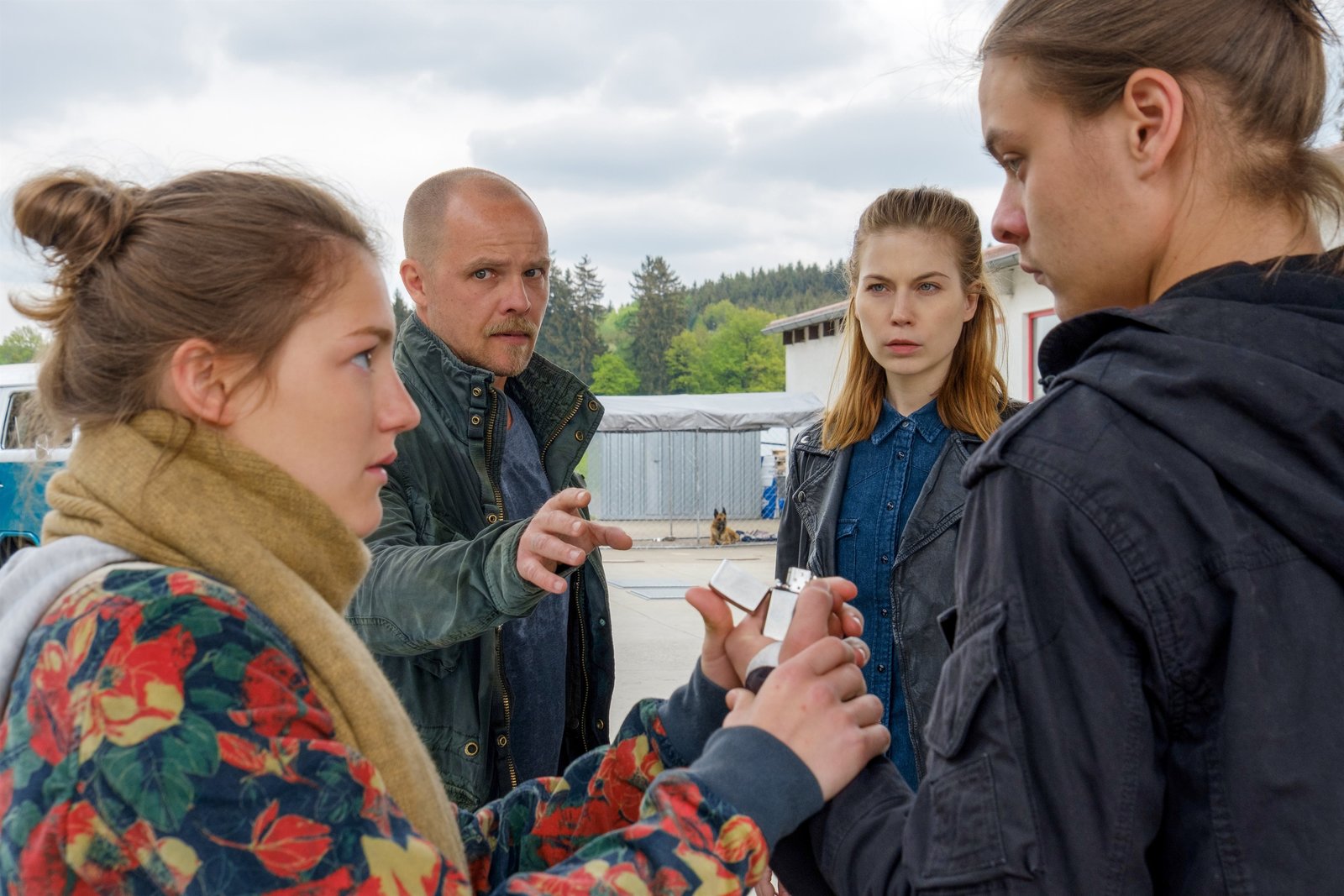 Der Stumpengang"Die Toten vom Bodensee", "Stumpengang." Im achten Teil "Die Toten vom Bodensee" werden die nächtlichen Wälder um den Bodensee der Schauplatz eines Mordes nach mythischer Vorlage. Oberländer und Zeiler werden von einer Schulklasse und ihrem Lehrer gerufen, die während einer mystischen Nachtwanderung durch die dunklen Bodenseewälder den leblosen und mit Lederkappen über den Händen gefesselten Ingmar Weidinger gefunden haben. Die Utensilien, mit denen der Tote gefesselt war, stammen aus dem Heimatkundemuseum: Im 14. Jahrhundert galt der "Stumpengang" als perfide Strafe für Verbrecher.Im Bild (v.li.): Sophie Stockinger (Manuela Frick), Matthias Koeberlin (Micha Oberländer), Nora Waldstätten (Hannah Zeiler), Béla Gabor Lenz (Lukas Weidinger).Bild: © ORF 2
