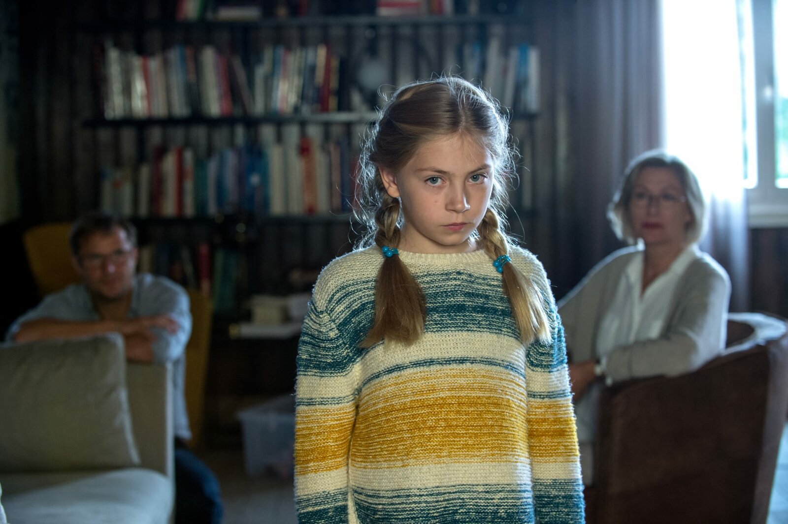 Stille WasserNoemi Rademann (Nara Knöpfle) weiß, wer der Mörder ist. Doch sie gibt vor, vergessen zu haben, was in der Tatnacht passierte. Um das Schweigen zu brechen, ist die Kinderpsychologin Lena Golding (Ingrid Mülleder) vor Ort, und ihr Vater Peter Rademann (Philipp Hochmair) redet ihr gut zu.Bild: © ZDF und Oliver Roth