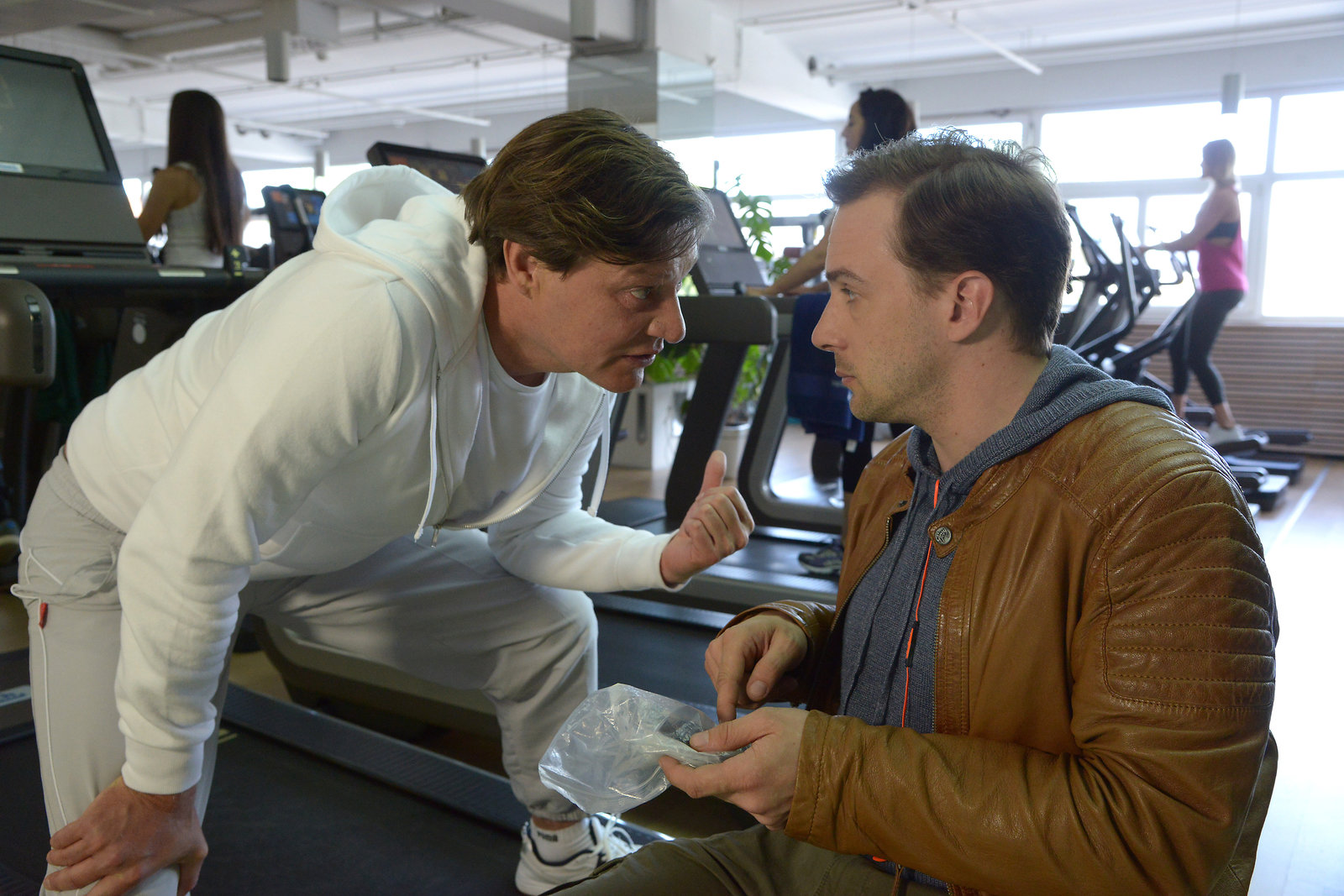 Nico Brix (Harald Windisch, l.) droht Peter Palfinger (Florian Teichtmeister, r.) als dieser Andeutungen macht, Nico könnte Holzer ermordet haben.