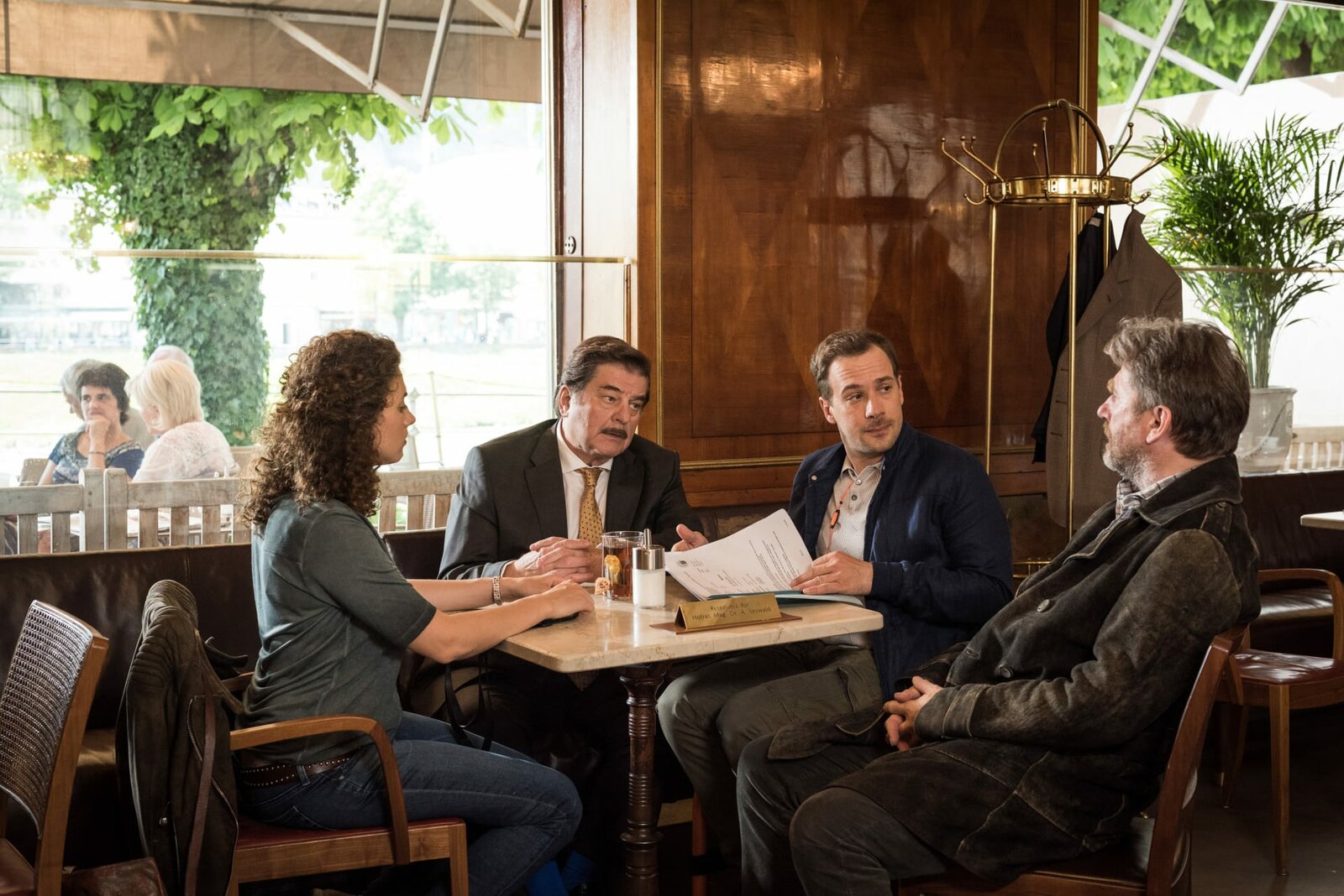 L-R: Irene Russmeyer (Fanny Krausz), Palfinger Peter (Florian Teichtmeister), Hubert Mur (Michael Fitz), Liana (Mila Böhning).