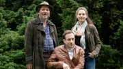 L-R: Michael Fitz als Hubert Mur, Florian Teichtmeister als Peter Palfinger, Fanny Krausz als Irene Russmeyer