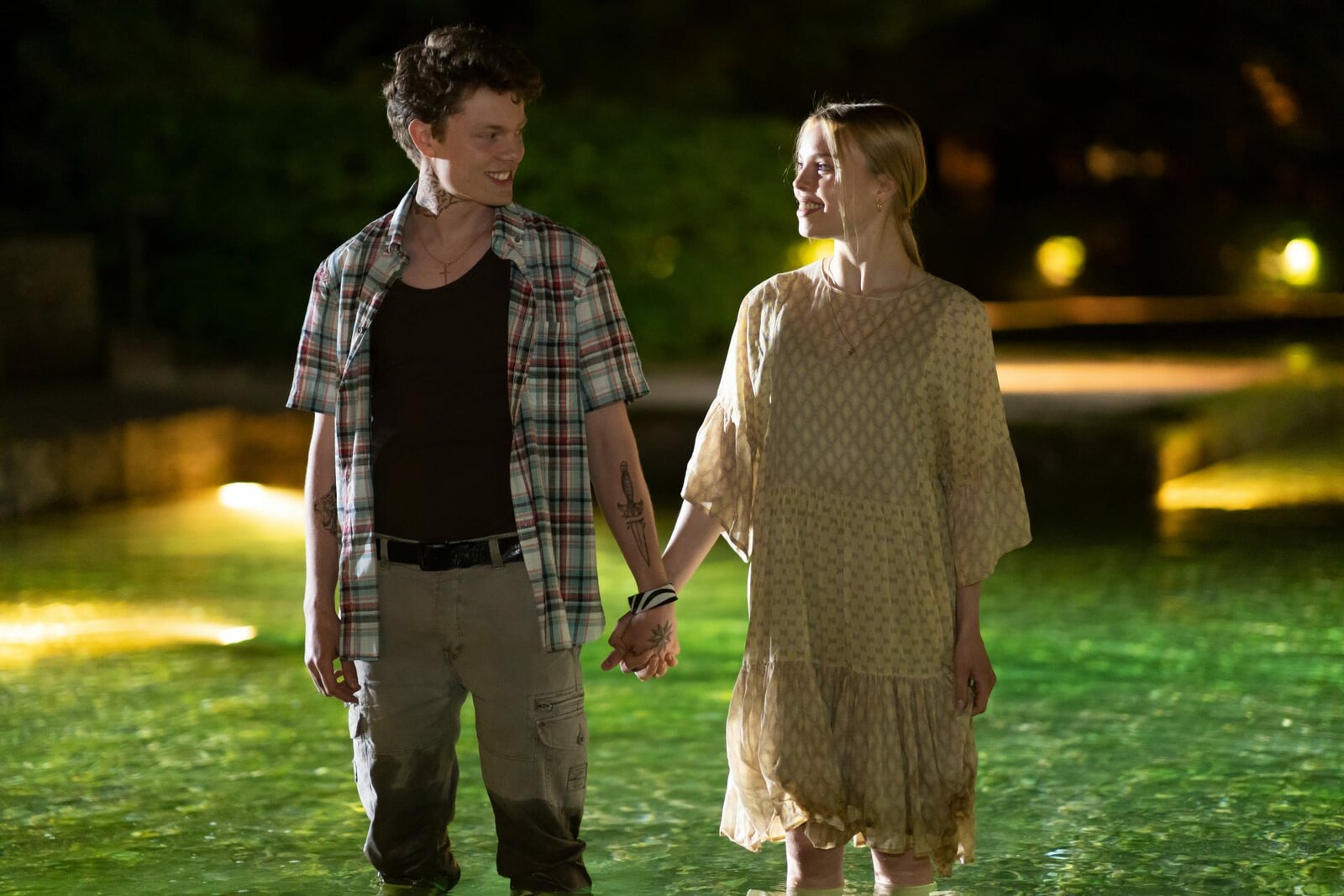Leonie Höfinger (Zoe Voss) und Jack Dunic (Nikolai Baar-Baarenfels) gehen zusammen zu den Wasserspielen.