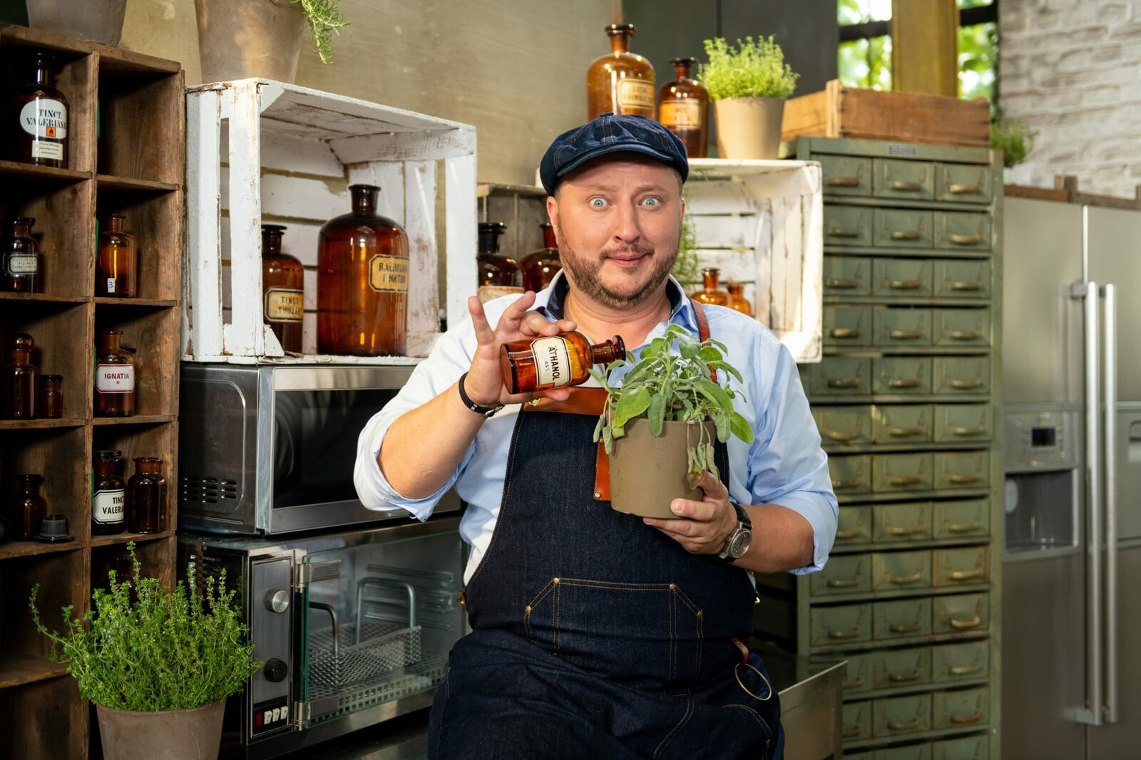 Billigpesto, Fake-Garnelen, DosensuppeProduktentwickler Sebastian Lege informiert unter anderem über Pesto fast ohne Basilikum.Bild: © ZDF und Lars Döring.