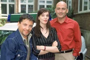 Wer einmal lügtPanitz (Patrick Bach, li.) und Fischer (Leon Boden) begrüßen ihre neue Kollegin Anna Wrede (Anna Sarah Hartung)Bild: © MG RTL D / Kai Schulz