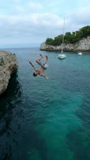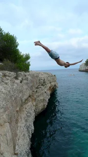 Waghalsige SprüngeDie Jungs-WG: Charlie beim Sprung von der Klippe.Bild: © ZDF/Tobias Zydra