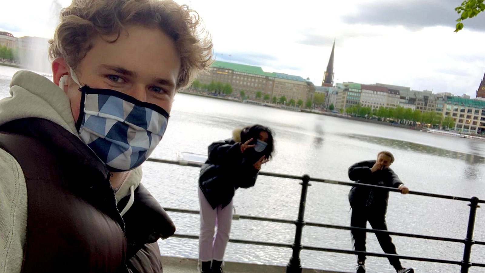Louisa und Philipp in FinnlandMark, Chantal und Alex treffen sich mit Abstand und Masken - immerhin wohnen sie alle drei in Hamburg.Bild: © ZDF/Christine Schröder