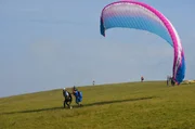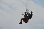 Abheben beim ParaglidenOle filmt sich während seines ersten Paragliding-Fluges.Bild: © ZDF und E+U TV Film- und Fernsehproduktion