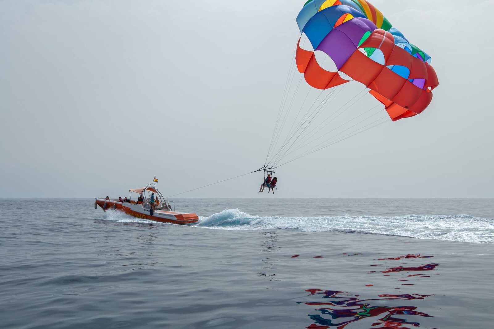 Mit Höhenangst bist du lost!Adrenalin steht auf dem Programm, die Jungs und Mädels dürfen eine Runde Parasailing machen. Dabei hängen sie 40 Meter über dem Wasser am einem Schirm, der von dem Boot gezogen wird.Bild: © ZDF/Georg Bussek